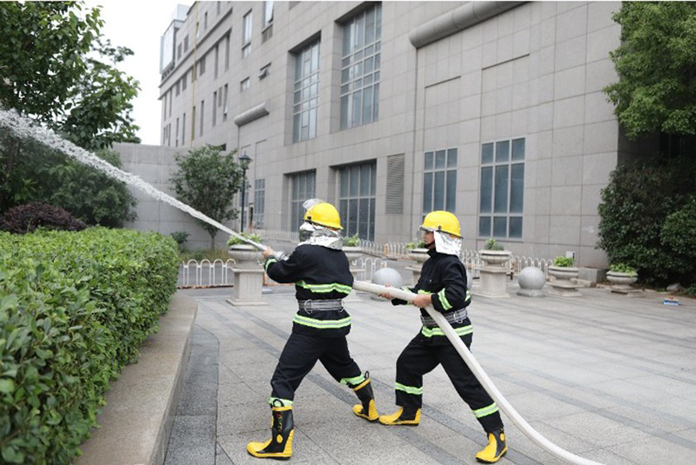 此次應(yīng)急演練活動的場景設(shè)計為集團總部大樓突發(fā)火警,人員受傷被困。當(dāng)天下午4時,集團應(yīng)急演練總指揮方旭下達應(yīng)急演練開始指令,隨后火警警報鳴響,應(yīng)急演練小組兵分兩組。一組承擔(dān)迅速撤離和自救任務(wù),現(xiàn)場演示樓層消防栓水帶、滅火器模擬使用,組織人員在煙霧場景下有條不紊地緊急疏散撤離,隨后開展對嚴(yán)重?zé)齻麄麊T的緊急營救;另一組快速穿戴消防防護設(shè)備,展開消防水帶,接通出水,并在一樓廣場空曠地帶點燃模擬著火桶,演示干粉滅火器滅火要領(lǐng)。本次應(yīng)急演練活動檢驗了集團各級各單位應(yīng)對火災(zāi)應(yīng)急處置的能力,同時也進一步普及火災(zāi)應(yīng)急處置與防災(zāi)減災(zāi)知識,有效提高了參演和觀摩人員風(fēng)險防范意識和自救互救能力。